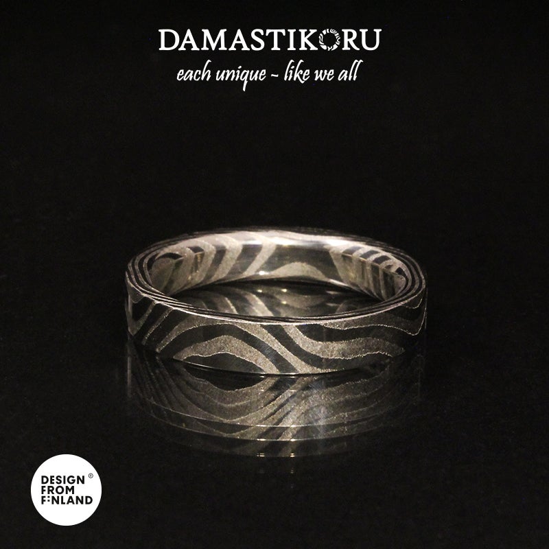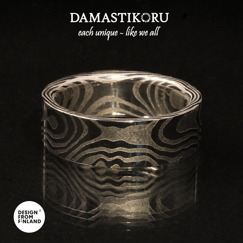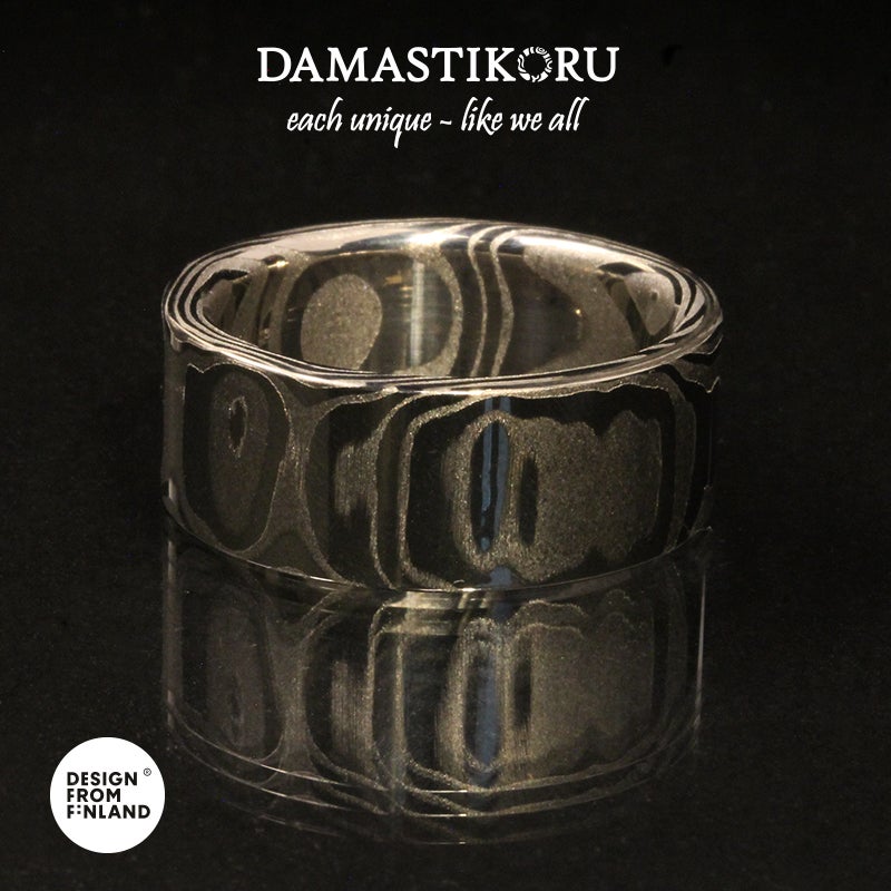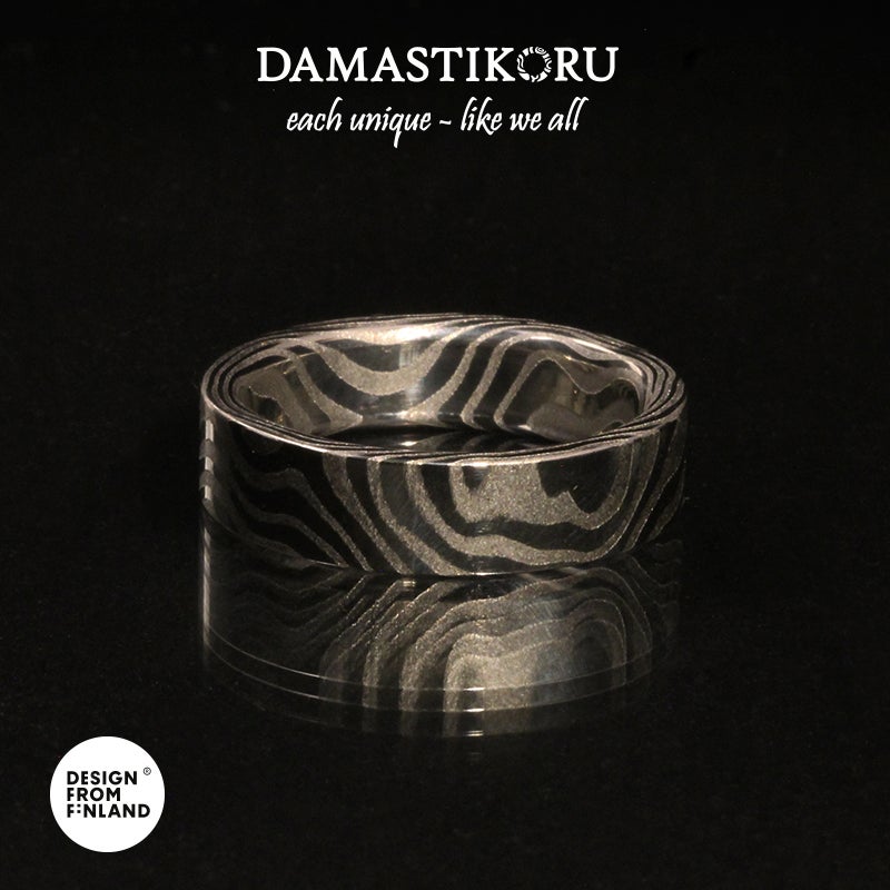 Kauniit aaltomaiset kuviot ovat selkeitä ja ne näkyvät samankaltaisena ympäri sormuksen. Tästä materiaalista syntyy näyttäviä ja yksilöllisiä sormuksia, joita ei ole aikaisemmin ollut saatavilla.